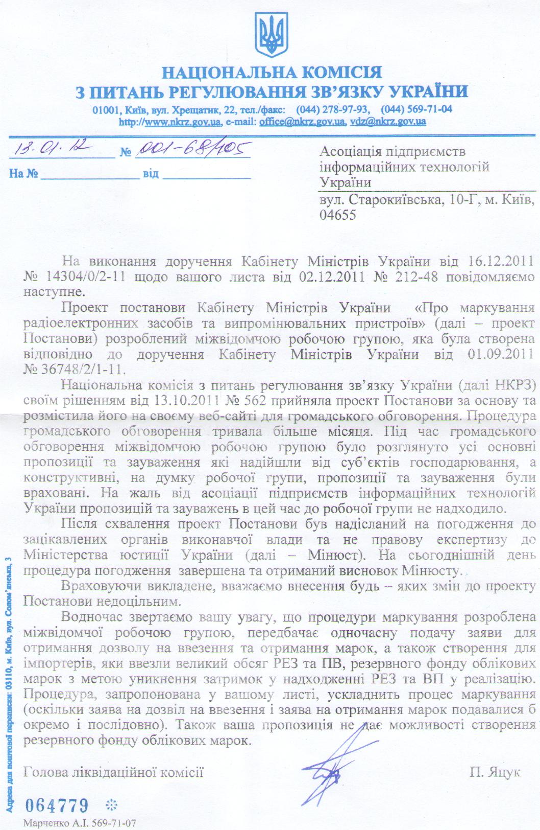 НКРЗ вважає недоцільним внесення змін до проекту постанови КМУ "Про маркування РЕЗ та ВП" (Reply_NKRZ_13.01.2012.JPG)